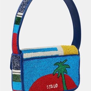NWT Staud Tommy Glass Beaded Shoulder Bag Purse in Graphic Palm Trees RARE!