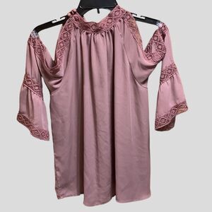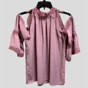 Charlotte Russe | Mauve Pink Cold Shoulder Lace trim Feminine Blouse Top Shirt