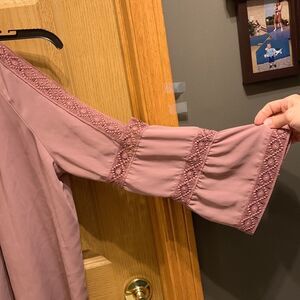 Beautiful Mauve Blouse With Lace Layered Bell Sleeves and a High Collar