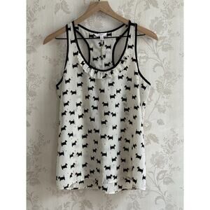 Scottie Dog Tank Top Sz M Ruffled Racer Back Cream Black Coquette Candie’s Heart