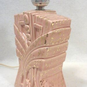 Vintage 50s Pink Ceramic Lamp Zena China Atomic Skyscraper Accent Made O…