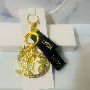NIB Dior GWP Gold Keychain/Bag Charm with Crystal Accents