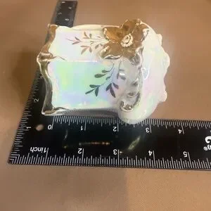 Porcelain footed creamer with iridescent finish and gold trim