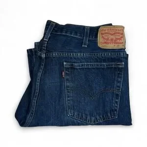 The product is a pair of Levi's 517 Boot Cut Jeans in a medium wash, featuring a classic 5-pocket design with a zip and button closure. Made of cotton denim, they offer comfort and easy care, making them suitable for all seasons. The bootcut style gives a flattering fit, while the logo accents add a touch of branding. These men's jeans size 40x28 are machine washable and come in a solid blue color, representing the timeless American denim style from Levi's.