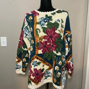 Vintage M.J. Caroll Colorful Floral Heavy Knit Sweater