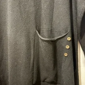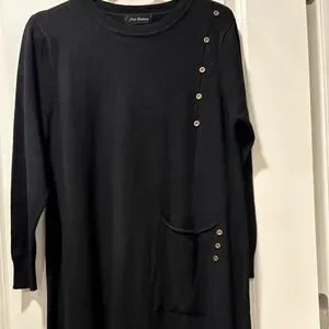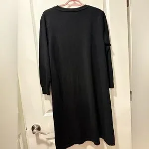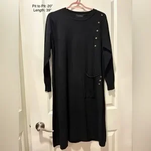 This elegant and soft black sweater dress features stylish button details, perfect for any occasion. Its classic design offers a timeless look.