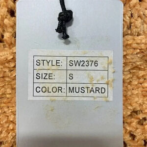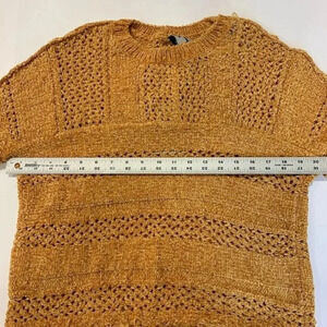 Rain + Rose Women's Chenille Mustard Fringe Long Sleeve Round Sweater Size S NWT