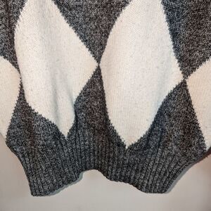 PRINGLE OF SCOTLAND Grey & White Argyle Wool Knit Crewneck Sweater Size Small
