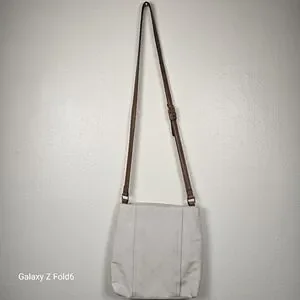 Vera Bradley Crossbody Shoulder Bag Beige Nylon Brown Strap Adjustable Medium
