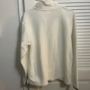 Elegant white zip-up sweater with a cozy fleece texture. Features a stylish quarter-zip design and subtle logo detail.