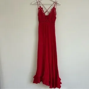 Cherry Red Free People Boho Asymmetrical Adella Maxi Slip - XS