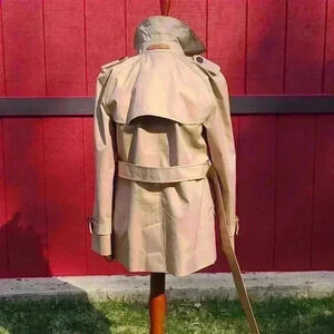 Women's Coach Khaki and Leopard Belted Short Trench Coat - XS