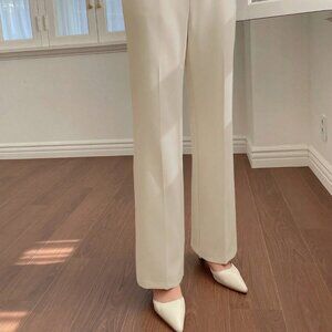 Elegant women's casual business pants with pockets, featuring a khaki color, regular fit, and flare leg design, perfect for spring and fall.