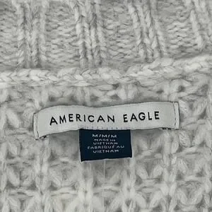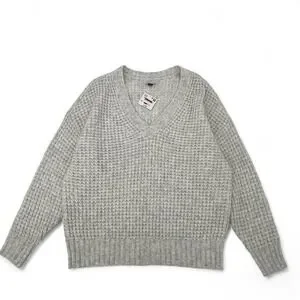 American Eagle Gray Oversized Waffle Knit V-Neck Sweater M | NWT Minor Flaw