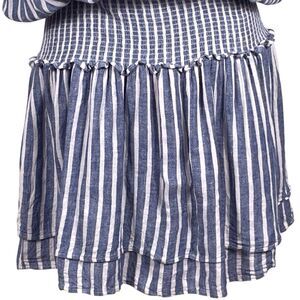 Rails Angelina Striped Smocked Tunic Dress Blue White Linen Blend Size Large