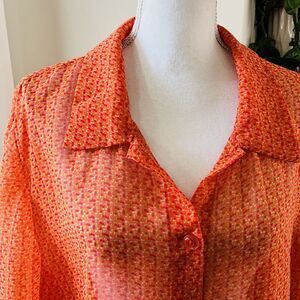 Studio C Orange Sheer Lacy Flowy Cottagecore Blouse - Plus Size 24W