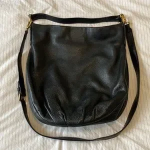 Chic black hobo bag with textured finish. Features gold-tone accents. Adjustable shoulder strap for comfort. Bundle the wallet and get discount shipping bonus an offer you can’t refuse!!