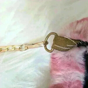 Pink faux fury leopard print purse with gold shoulder chain NWOT