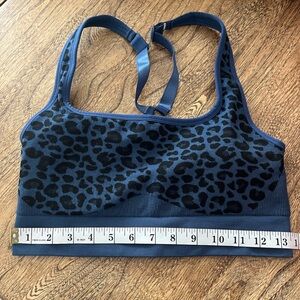 Fabletics women’s size large sports bra blue with leopard print light padding