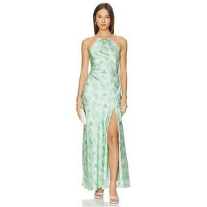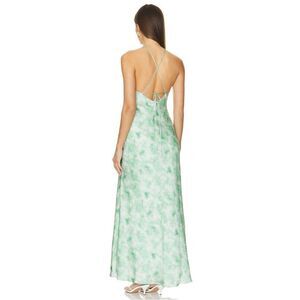 New ASTR Lace Up Satin Slip Midi Elynor Dress in Green Abstract