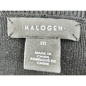 Halogen Black Sweater with Black & White Striped Bell Ruffle Sleeve. Super soft sweater with cotton bell striped sleeve. Dress up or down. Size Medium. Measurements taken laying flat: