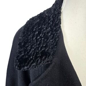Kasper Womens Black Double Breasted Wool Blend Coat Faux Fur Collar Made USA