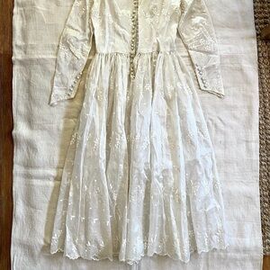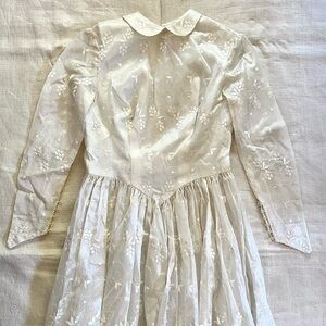 Vintage Gossamer organza embroidered floral button Peter Pan collar wedding dress. 80’s era. Handmade. No size tag - fits like an XS. VGUC! Absolutely beautiful construction, flow, the button details, collar!