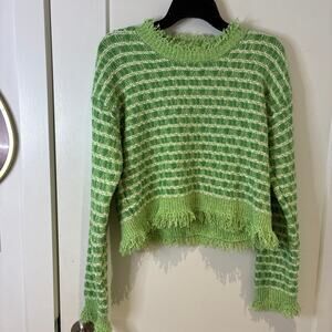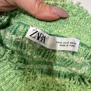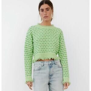 Zara Green Fringe Hem Cropped Sweater Small