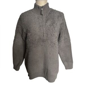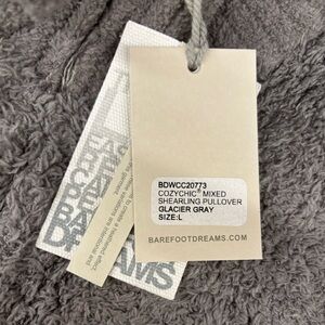 Barefoot Dreams Cozychic Mixed Shearling Pullover Glacier Gray Size Large NWT