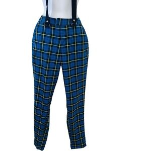 Hot Topic Plaid Pants Woman XS Suspenders Blue Pockets Preppy School Y2K Retro