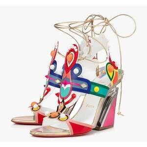 Christian Louboutin Papagaya Levita 100 Multicolor Lace Up Wedge Sandal Heel 37