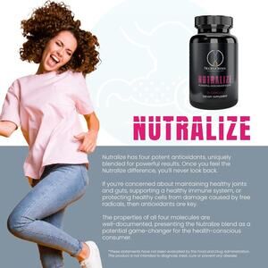 Cell Protection: Nutralize combines the power of four potent cell protectors to provide comprehensive support for your health. Work synergistically, so that you get the most out of every capsule. Supports Healthy Aging: One of the primary benefits of Nutralize is to fight the effects of damaging free radicals. Nutralize helps to support a healthy aging process by neutralizing these free radicals. Xanthohumol Benefits: Xanthohumol is a key ingredient in Nutralize, derived from the flowering Hops plant. It offers over two hundred times the effect of Resveratrol, another well-known substance found in red wine. CurcuPrime Technology: Nutralize uses CurcuPrime technology to enhance the bioavailability and efficacy of turmeric's active compound, Curcumin. This ensures that you get the maximum benefits from turmeric. Easy Daily Use: Incorporating Nutralize into your daily routine is easy. Take one capsule daily to experience the effects of this powerful capsule. Empower yourself to embrace a healthier lifestyle.