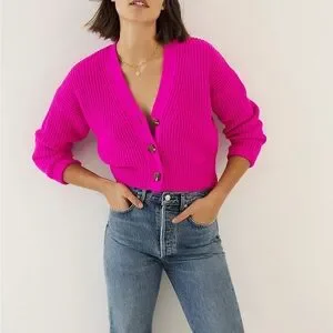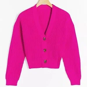 Vibrant pink cardigan with button front. Perfect for a bold look.