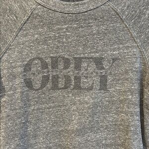 Classic Obey sweatshirt in heather gray. Soft and comfortable for everyday wear. EUC no flaws. Pit to pit is 18 inches.