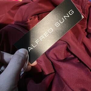Alfred Sung Jersey Mikado Gown Dress Womens 4 Burgundy Formal Holiday Gala