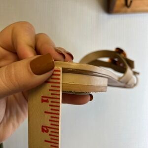 CULT GAIA Beige Leather Square Toe Triple Buckle Slide Sandals Size 39