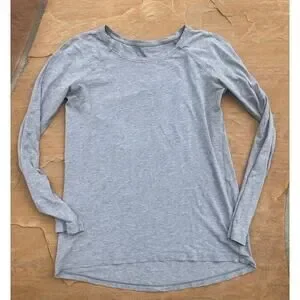 Thin Grey Long Sleeve LULULEMON Top Longer Cut Stretch Shirt Sz M