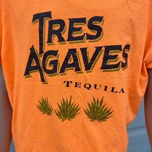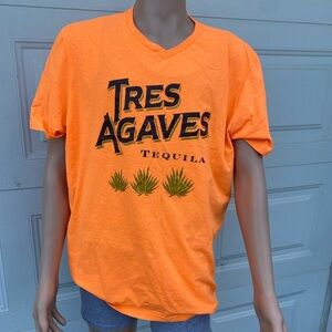 Bright orange t-shirt featuring Tres Agaves Tequila logo. Casual and vibrant design.