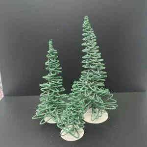 Vintage Dept 56 Village Frosted Zig-zag Trees Set of 3 Retired Green 5250-7 star