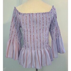 Candie's XL Purple Pop Stripe Smocked Marilyn Top Milk Maid Bell Sleeve Ruffle
