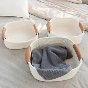 Latitude Run® Nesting Rope Decorative Basket (Set of 3) White with Tan Leather