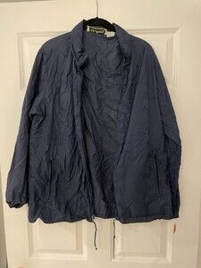 Vintage L.L. Bean Packable Navy Anorak Zip Up Hooded Windbreaker Men’s SzM In excellent vintage condition with no obvious pulls, tears, or stains. Natural wrinkling and uniform color fading commensurate with age and light use. Hood is packable into the jackets collar. Whole jacket packs up into the jacket pocket for easy travel and transport. Jacket is perfect for the tech jacket trend.