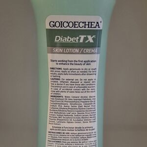 Goicoechea DiabetTX skin lotion for dry, rough skin. Specially formulated for people with diabetes. 13.5 FL OZ bottle with pump. Brand new, never opened.