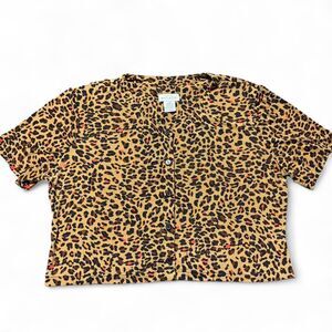 y2K White Stag Slinky Cheetah Print Crop Top Button Up Bouse size L
