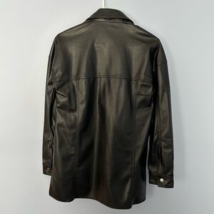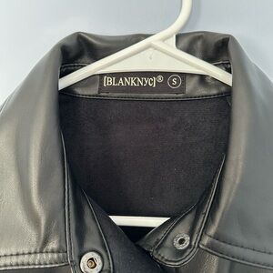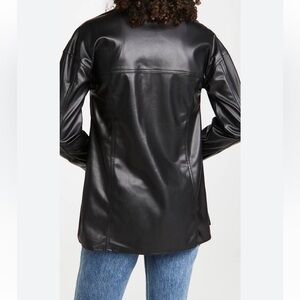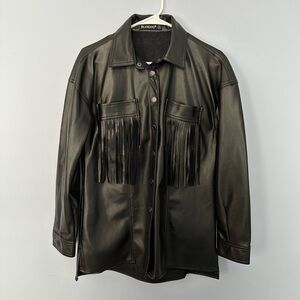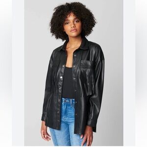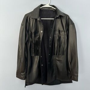 Blank NYC Women’s Lonestar Oversized Vegan Leather Fringe Shirt Jacket S Black