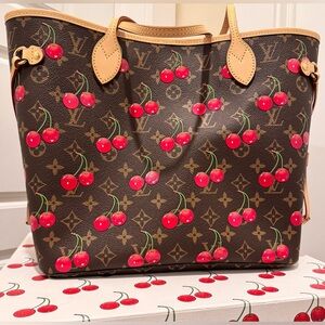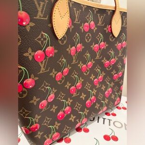 Louis Vuitton x Takashi Murakami Neverfull MM monogram cherry tote bag, brand new with tags.