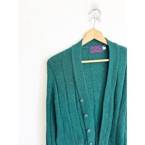Vintage 90s green Scottish isle wool blend long sleeve cardigan sweater size L