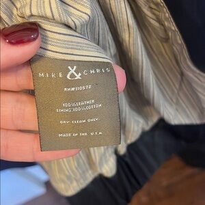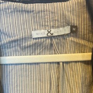Mike and Chris leather jacket. 100% leather. Soft lamb skin leather. Size medium. I think I wore this coat 1 time, its in perfect condition, no flaws in the leather or hardware. It’s a very comfortable leather coat, not stiff.
