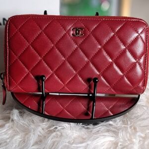 Beautiful Chanel Red Quilted Cavier Zip Around Wallet with COA.