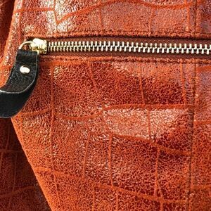 Excellent condition!! No flaws. Comfortable leather handle. High-end designer quality materials. Faux croc print. Outside side pocket. Lined with plenty of storage compartments inside.